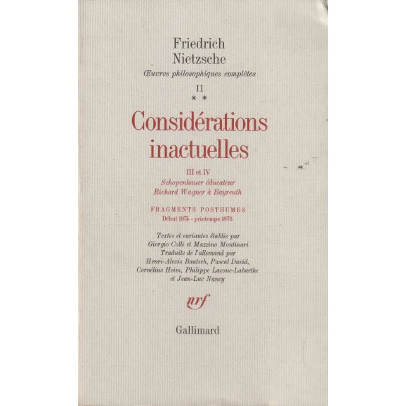 Ano 1988 Autor Friedrich Nietzsche Editora Gallimard Estado Usado IDIOMA FRANCÊS Estante Filosofia ENCADERNAÇÃO Brochura