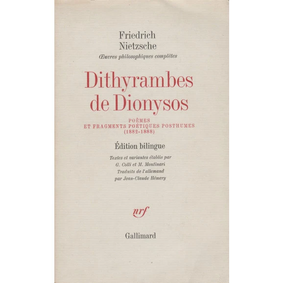 Ano 1974 Autor Friedrich Nietzsche Editora Gallimard Estado Usado IDIOMA FRANCÊS Estante Filosofia ENCADERNAÇÃO Brochura